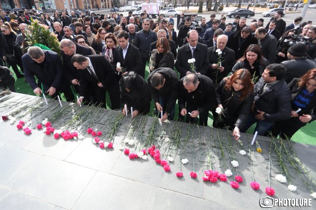 Մյասնիկյանի արձանին հարող տարածքում այսօր Մարտի 1-ի զոհերի հիշատակին ծաղիկներ դրեց «Բարգավաճ Հայաստան» կուսակցության ղեկավար Գագիկ Ծառուկյանը: Նա պատասխանեց նաեւ լրագրողների հարցերին:
