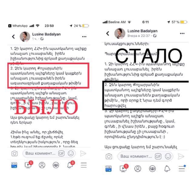 «Կեղծ լրատվությունը համաշխարհային խնդիր է, որին ես էլ եմ անդրադարձել: Մամուլի ազատությանը չի կարելի կպնել, չի կարելի մամուլի դեմ հետապնդումներ իրականացնել»,-լրագրողների հետ հանդիպմանն այսօր անդրադառնալով «Իմ քայլի» պատգամավոր Լուսինե Բադալյանի («Լուլու») վերջին քննադատված ֆեյսբուքյան գրառմանը ԶԼՄ-ների գործունեության մասին, ասաց վարչապետ Նիկոլ Փաշինյանը: