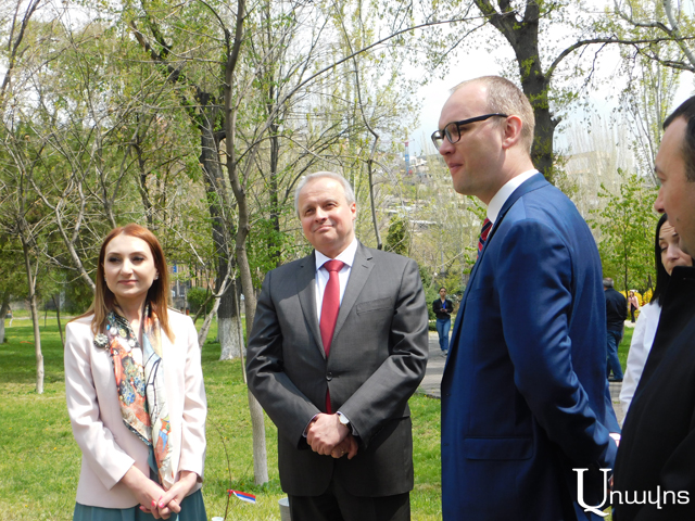Ծառատունկի ժամանակ Արարատ Միրզոյանը բռնեց տնկին, իսկ դեսպանը ջանասիրաբար սկսեց տնկել այն, ԱԺ նախագահը նկատեց՝ դուք ահագին փորձառու եք այս գործում: