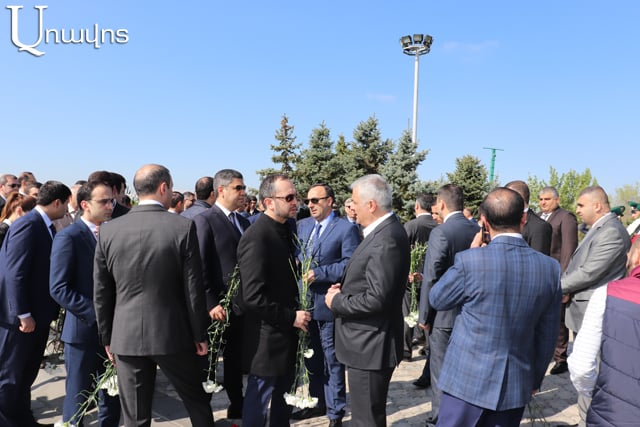 Ավելի վաղ հուշահամալիր այցելեց նախկին պաշտոնյա Վաչե Գաբրիելյանը: Լրագրողների հարցերին նա չցանկացավ պատասխանել, միայն ասաց, որ յուրաքանչյուր հայի պարտքն է այսօր խնկարկել զոհերի հիշատակը: