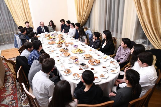 ՀՀ վարչապետ Նիկոլ Փաշինյանն ու տիկին Աննա Հակոբյանը ապրիլի 24-ի երեկոյան իրենց տանը հյուրընկալել են ԱՄՆ Լոս Անջելես քաղաքում գործող Շամելյան հայկական ազգային վարժարանի սաներին: Հանդիպմանը ներկա են գտնվել են նաև վարչապետի երկու դստրերը` Շուշան և Արփի Փաշինյանները: