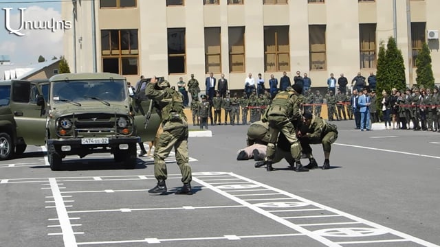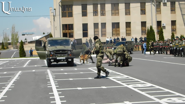 Հետաքրքիր էր, որ Սահմանապահ զորքերի արագ արձագանքման բաժնի անձնակազմը ուժային եւ ձեռնամարտի հնարքներ ցուցադրեց՝ սվին դանակի, ինքնաձիգի եւ ատրճանակի կիրառմամբ: Մեղմ ասած, Փաշինյանին ներկայացրեցին «ասֆալտին պառկեցնելու» նուրբ արվեստը՝ կրակոցներ, ծուխ, ռումբի պայթեցում, շներով համար եւ այլն: