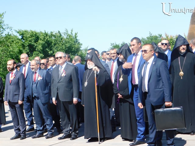 Այսօր՝ Առաջին հանրապետության հիմնադրման օրը Սարդարապատում էին ՀՀ բարձրաստիճան պաշտոնյաները՝ վարչապետ Նիկոլ Փաշինյանի, նախագահ Արմեն Սարգսյանի, կաթողիկոսի գլխավորությամբ: