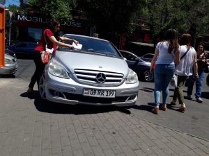 Հարգելիʹ վարորդներ, խստորեն պահանջում ենք՝ միʹ կայանեք ձեր մեքենաները մայթերին և թեքահարթակների դիմաց։ Միʹ սահմանափակեք մանկասայլակով ծնողի և տեղաշարժման դժվարություններ ունեցող անձանց ազատ տեղաշարժվելու իրավունքը։