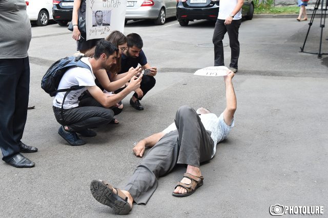 ՍԴ բակում է նաև քաղաքացիական ակտիվիստ Վարդգես Գասպարին: Նա ի նշան բողոքի պառկել է: