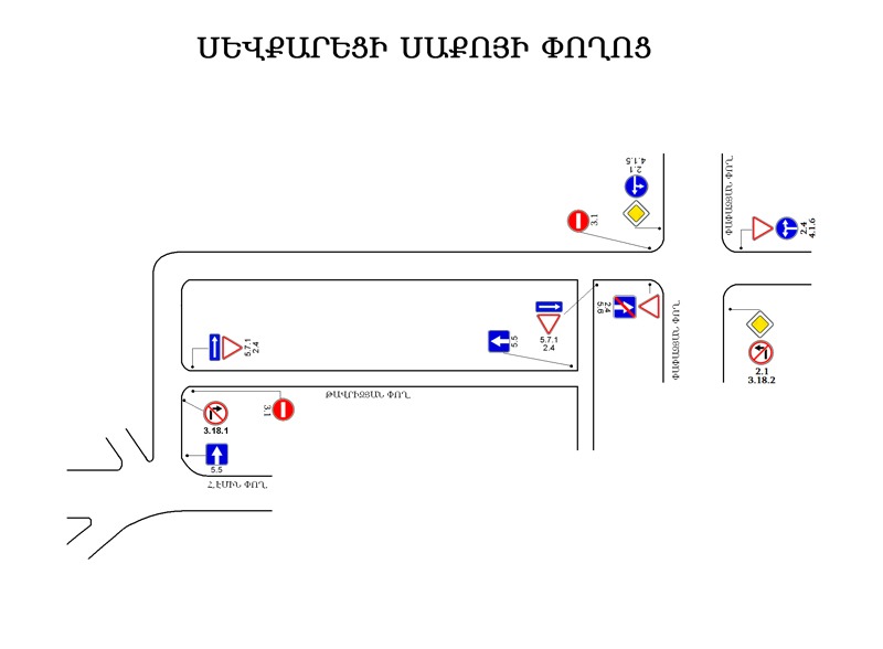 Փոփոխության արդյունքում Սևքարեցի Սաքոյի և Թավրիզյան փողոցների նշված հատվածներում երթևեկությունն այսուհետ կլինի միակողմանի՝ ըստ կից ներկայացված սխեմայի: