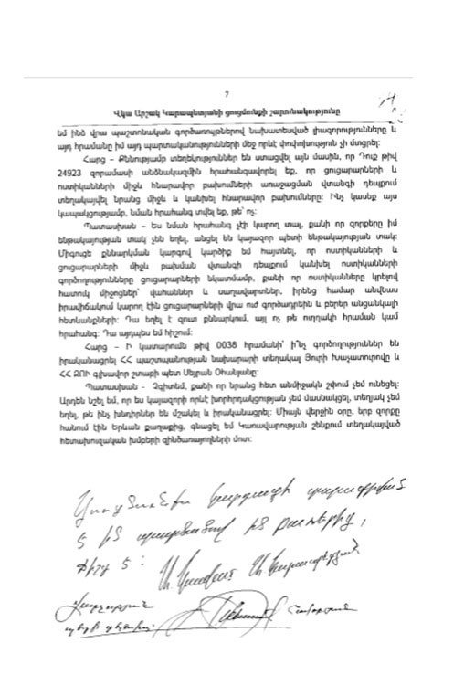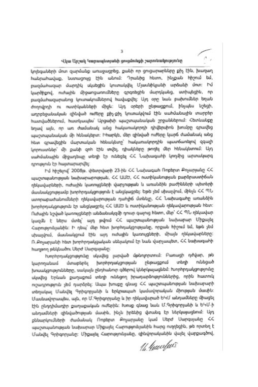 «Ավելին նշեմ, ինչո՞ւ էին Արցախի պաշտպանության բանակից զորամիավորումներ բերվել, երբ դրանք ավելի շատ պետք էին հենց Արցախի պաշտպանական հատվածներում, որտեղ, ինչպես նշեցի, այդ օրերին դիվերսիոն հարձակում է տեղի ունեցել»: