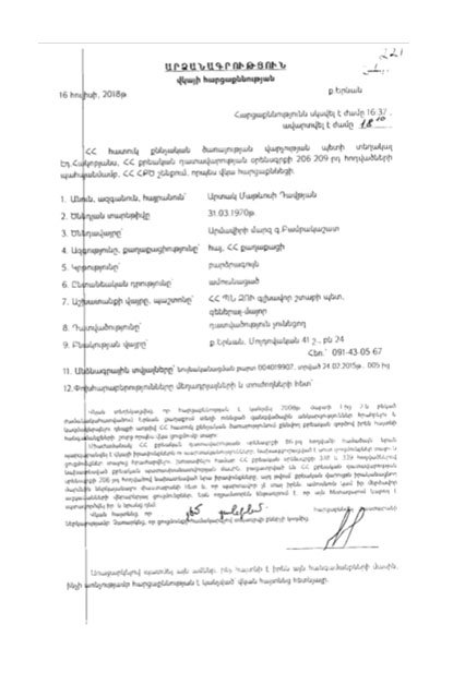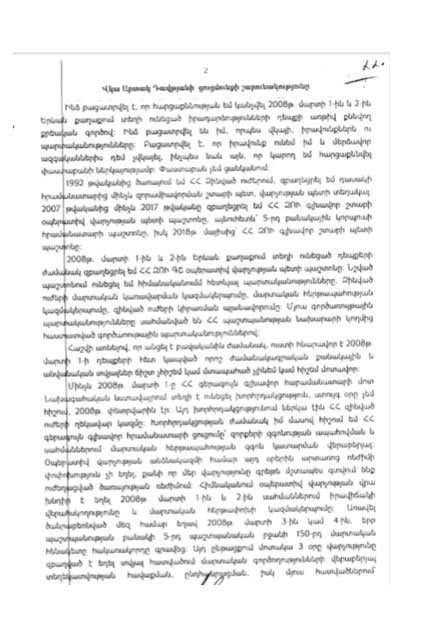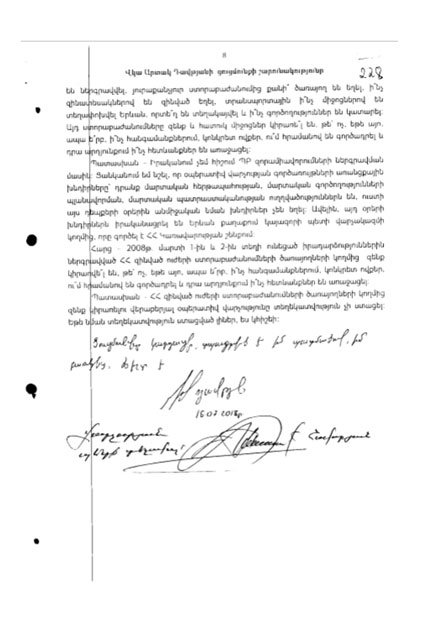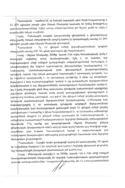 «Առաջին լրատվական»-ի ձեռքի տակ է հայտնվել Մարտի 1-ի քրեական գործի շրջանակներում ՀՀ ՊՆ ԶՈՒ գլխավոր շտաբի պետ Արտակ Դավթյանի նախաքննական ցուցմունքը, որը ներկայացնում ենք ստորև․
