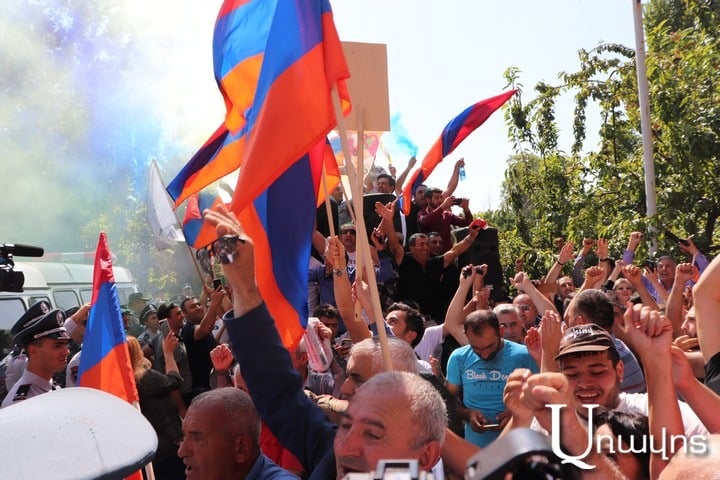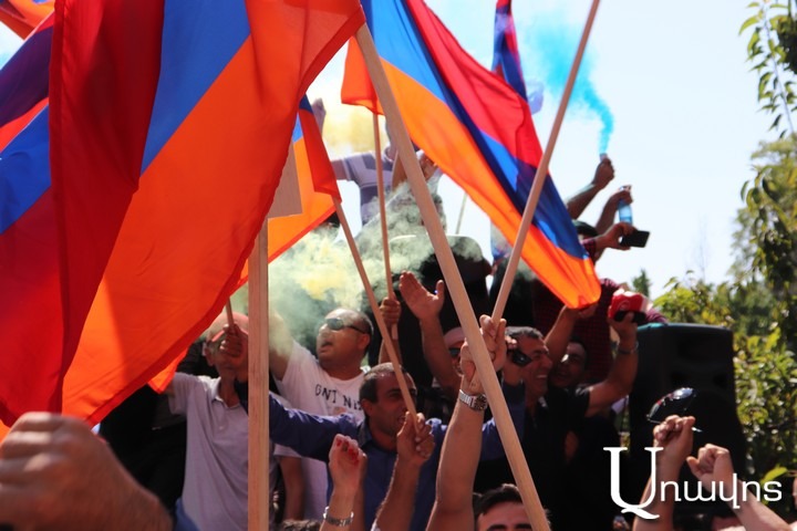 Ցուցարարներն ասում էին, որ Քոչարյանը հայ ժողովրդի ամենամեծ թշնամիներից է ու պետք է դատապարտվի: Քիչ անց դատարանի տարածքում շնչել չէր լինում, ծխարձակիչների ծուխը պատել էր տարածքը: