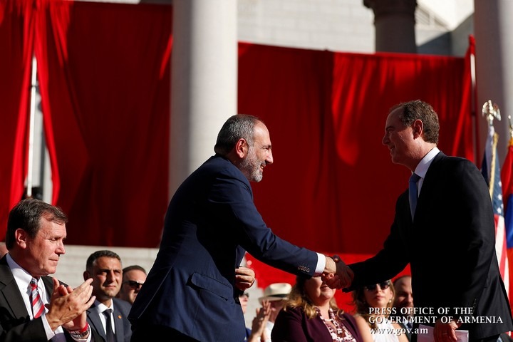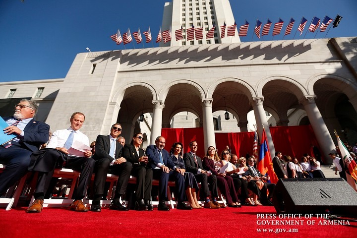 Խնդրում եմ ողջույնի մեր հայկական ծափահարությունները հղենք Կալիֆորնիայի նահանգապետին, փոխնահանգապետին, Լոս Անջելեսի քաղաքապետին, Լոս Անջելեսի մարզի կառավարիչներին: Շնորհակալություն Լոս Անջելեսի քաղաքային խորհրդի անդամ Պոլ Կրեկորյանին: Այս անմոռանալի միջոցառման անցկացմանն աջակցելը ես համարում եմ Ամերիկայի Միացյալ Նահանգների բարեկամական ժեստը Ժողովրդավարական Հայաստանին, նշել ԱՄՆ աջակցությունը մեր պետականաշինության գործին: