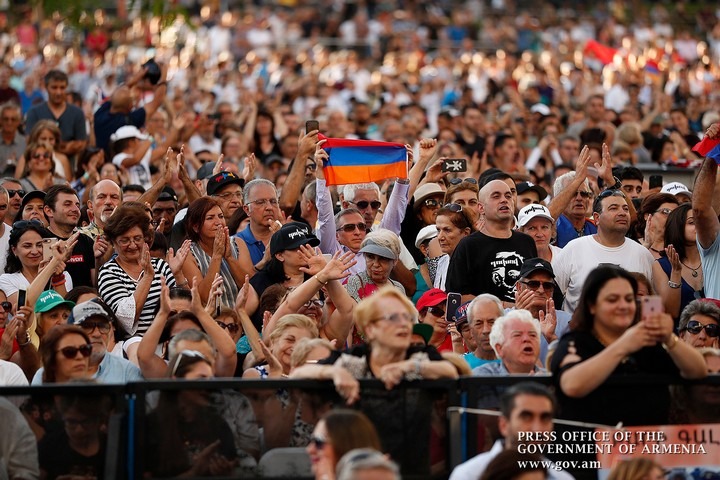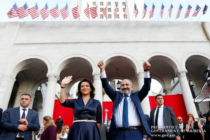 Սիրելի ժողովուրդ, այսօր ես եկել եմ այստեղ, որպեսզի շնորհակալություն հայտնեմ Ձեզ և ի դեմս Ձեզ շնորհակալություն հայտնեմ ամբողջ Սփյուռքին: Ես ուզում եմ Ձեզ շնորհակալություն հայտնել, որ թավշյա հեղափոխության օրերին դուք ամուր կանգնած էիք Երևանի Հանրապետության հրապարակում: Այո, կապ չունի՝ ձեզնից ով էր ֆիզիկապես ներկա այնտեղ, բայց մենք բոլորս Հանրապետության հրապարակում այդ օրերին զգացել ենք ձեր աջակցող շունչը, ձեր հզոր ներկայությունը, ձեր մեծ էներգիան: Դուք և մենք միասին ենք կերտել ժողովրդավարական և ժողովրդական այն հաղթանակը, որը նոր փառք է բերել Հայաստանին և հայ ժողովրդին՝ ի դեմս նրա ցույց տալով մի երկիր և ժողովուրդ, որը պատրաստ է և վերցրել է շատերի կարծիքով անկում ապրող ժողովրդավարության դրոշը: Այսօր ամբողջ աշխարհը Հայաստանին համարում է ժողովրդավարության հույս և այդ հույսը նաև դուք եք կերտել: