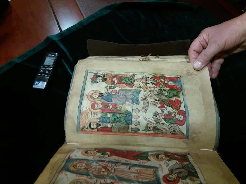 Րոպեներ հետո ավանդապահ Անահիտ Հայրապետյանը, ձեռքի փաթեթը սեղանին բացելով, ցուցադրեց մատյանը, և ուխտավորները շրջապատեցին իրենց տոհմական սրբությունը: Խոնարհումից ու երկրպագումից հետո նրանք ուշադիր հետևեցին մասնագետի բացատրություններին: Նախ դիտեցին մատյանի սկզբում տեղադրված մեկ տասնյակի հասնող մանրանկարչական էջերը, որոնցում պատկերված էին ավետարանական նշանավոր դրվագներ: Տպավորվեց հատկապես այն էջը, ուր պատկերված էր Հիսուսի կանխատեսումը իր աշակերտ Պետրոսի «հավատարմության» վերաբերյալ: