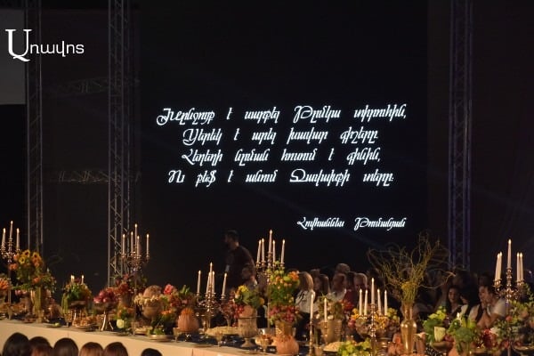 «Ինչպես մեր նախորդ ցուցադրությունները, այս մեկը ևս առանձնանում է իր կոնցեպտով։ Կոնցեպտը խնջույքն է. ցուցադրության առաջին մասում ներկայացված էին ճաշկերույթի պատրաստվելու ընթացքը. շեշտել ենք սպասքադրման գործընթացի կարևորությունը: Օգտագործվել են տարրեր հայկական հենց այն ավանդական ուտեստներից, որոնց հաճախորդը կարող է հանդիպել «Երեմյան Փրոջեքթս» ընկերության ռեստորաններում։ Եվ, իհարկե, ցանկացել էինք ընդգծել ռեստորան գնալիս պատրաստվելու արարողակարգի կարևորությունն ու էսթետիկան։ Այստեղ մարդիկ են, կերպարներ, ովքեր մասնակցում են ճաշկերույթի որևէ բարձրակարգ ռեստորանում և իրենց տեսքն էլ նույնքան տարբերվող է, որքան այդ ռեստորանի խոհանոցը»: