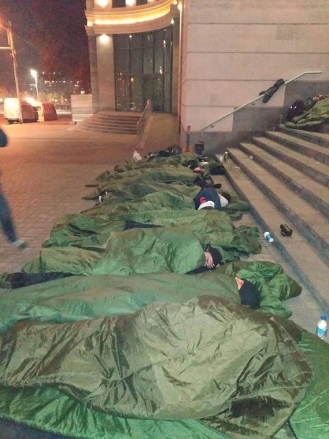 ԿԳՄՍ նախարարության շենքի առաջ կայացավ նախարար Արայիկ Հարությունյանի հրաժարականը պահանջող նախաձեռնվող խմբի մամուլի ասուլիսը:15-րդ օրն է շարունակվում է դաշնակցական երիտասարդների նստացույցը, եւ նրանք քնապարկերով շարունակում են գիշերել նախարարության շենքի մոտ: