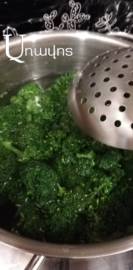 Բանջարեղենները լավ լվանալ, գազարը կեղեւել, բրոկոլին եւ ծաղկակաղամբը կարող եք եւ հում օգտագործել եւ «վախեցրած»: «Վախեցնելու» համար կաթսայով ջուր դրեք եռալու, աղ արեք, հենց սկսի ակտիվ եռալ, բրոկոլին կամ ծաղկակաղամբը գցեք մեջը, ուղիղ մեկ րոպե անց անջատեք, անմիջապես հանեք ջրից, թողեք սառչի: