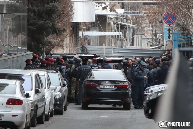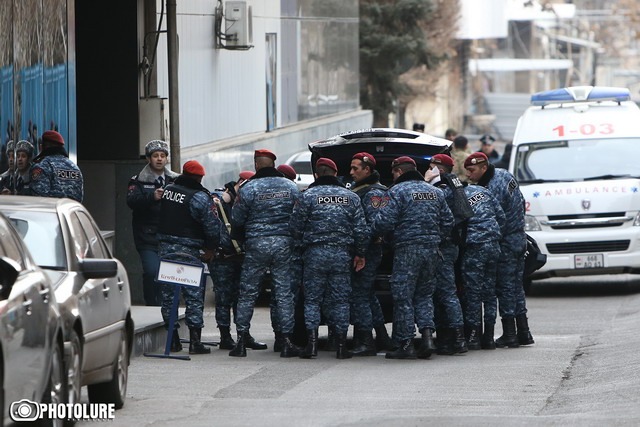 ՀՀ ոստիկանության լրատվության պետ Աշոտ Ահարոնյանը լրագրողների հետ զրույցում հայտնեց, որ շենքի ներսում վիրավորներ, զոհեր կամ պատանդ վերցված քաղաքացիներ չկան: Նա տեղեկացրեց, որ զինված անձը հանձնել է զենքը, անձամբ ոստիկանության պետի ժամանակավոր պաշտոնակատարի հետ բանակցություններից հետո: