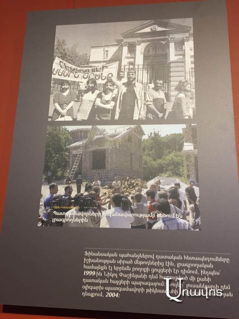 Նա ներկայացրեց ցուցահանդեսը, որը տարբեր շրջանների է անդրադառնում, հիշեցրեց նաեւ շրջված իրականության մեջ հայտնվելը, այն օրերը, երբ մի ժամանակ էլ «ազգային արժեքներով» էին սկսել ճնշել ժողովրդավարական արժեքները: