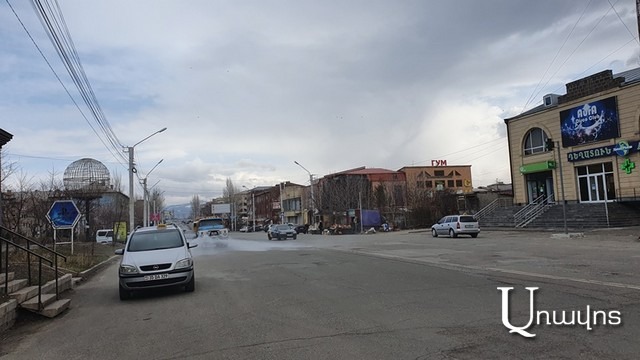 Ոստիկանության մեքենաները «Հայուհու» հրապարակում կանգնած հսկում էին մեքենաների տեղաշարժը, ուղևորների քանակը։ Ականատես եղանք, որ Գյումրու քաղաքապետարանը գրեթե բոլոր փողոցներում ախտահանման աշխատանքներ էր իրականացնում՝ գեթ մեկ վայրկյան դադար չտալով։