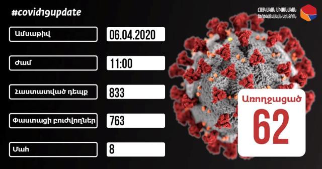 Կորոնավիրուսային հիվանդության հաստատված դեպքերի թիվը՝ 833