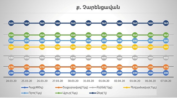 Համաձայն ներկայացված տվյալների՝ Կոտայքի մարզում, մասնավորապես դիտարկված Աբովյան, Հրազդան, Եղվարդ, Չարենցավան համայնքներում նշված ապրանքատեսակների գծով գնային փոփոխություններ չեն արձանագրվել: