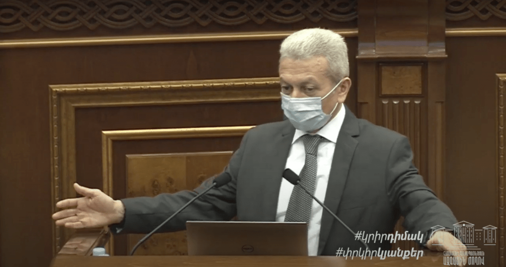 Այնուհետև Սերգեյ Բագրատյանը իր հարցը ուղղեց ֆինանսների նախարարին՝ նշելով, որ իր զեկույցում նշված է, որ 2019 թվականին փաստացի պայմանագրերի 66.4 տոկոսը կնքվել է մեկ անձից գնման ձևով. «Պարզ քաղաքացին կամ ընդդիմությունը լեգալ իրավունք ունի՞ հարցնելու՝ ինչո՞ւ են այդպիսի թվեր հրապարակված։ Ինչո՞ւ պետք է մեկ անձից գնումները այդքան մեծ թիվ կազմեն։ Լեգալ իրավունք ունե՞նք կասկածելու, որ այս թվերի մեջ վտանգներ կան, ռիսկեր կան, չի բացառվում, որ կոռուպցիա լինի։ Դա չի նշանակում, որ այդ կոռուպցիան վերաբերում է կոնկրետ Ձեզ կամ կոնկրետ վարչապետին կամ կոնկրետ որևէ անձի։ Սա նշանակում է, որ սա ռիսկային գործարք է։ Այսպիսի ռիսկային գործարքներ և այսպիսի մեծ քանակի, վստահ եմ, որ եթե ուսումնասիրենք, որևէ միջին զարգացած երկրում հնարավոր չէ, որ տեղի ունենա։ Այս թիվը պետք է իջնի առավելագույնը 2%, 3%, 5%, բայց ոչ 66 տոկոս։ Հիմա այդ հարցը գնահատեք։ Կարող եք ասել՝ այդպիսի վատ հարց ինչի՞ եք տալիս, պարոն Բագրատյան։ Կարող եք շատ լավ հարց տալ, ասեք, պարոն Ջանջուղազյան, էս ի՞նչ լավ ծախսեր եք արել, էս ինչ լավ կենսամակարդակ եք ապահովել։ Բայց մենք ընդդիմություն ենք, մենք պետք է սա անենք, որովհետև մենք՝ որպես քաղաքական ուժ որպես այդպիսին իշխանությանը հայտ ենք ներկայացնում, ընդդիմության նպատակը դա է։ Եվ հարցերի նպատակը այդտեղ փնտրեք։ Ինձ մոտ տպավորություն կա, որ ձեզ մոտ իներցիայով դեռ ընդդիմադիրն է նստած, և դուք զարմանում եք, որ ընդդիմությանը ո՞նց կարելի է քննադատել։ Մենք իշխանությանն ենք քննադատում, դուք արդեն իշխանություն եք, և հարցերի տրամաբանությունը պետք է ճիշտ պատկերացնեք»։