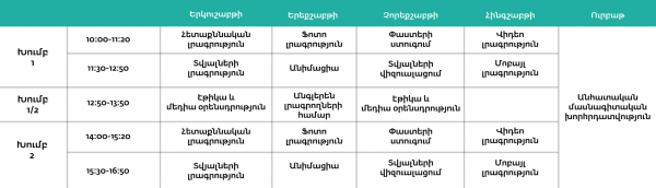 Հետք Մեդիա Գործարանում դասավանդվելու են հետևյալ առարկաները․