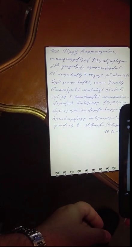 Հիշեցնենք, ԱԱԾ-ն հրապարակել է հունիսի 14-ին ԱԺ ԲՀԿ խմբակցության ղեկավար Գագիկ Ծառուկյանի տանը խուզարկության տեսանյութի կադրերը։ Տեսանյութում երեւում է նաեւ ԲՀԿ մի շարք պատգամավորների գրած եւ ստորագրած թղթերը: Այդ գրություններով, ԲՀԿ-ական պատգամավորները իբրեւ հավատարմություն են հայտնում Գագիկ Ծառուկյանին։