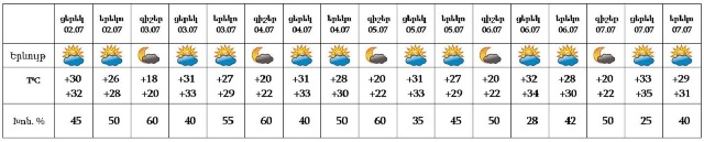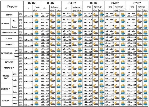 Հուլիսի 2-3-ը և 6-7-ը սպասվում է առանց տեղումների եղանակ: