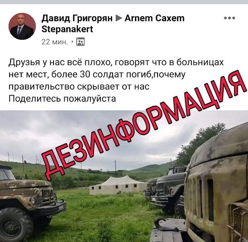Այս օրերին կարող ենք հանդիպել կեղծ տեղեկություններ տարածող ֆեյսբուքյան հազարավոր օգտատերերի, որոնք գրում են հայատառ, և, թվում է՝ տիրապետում են շատ կարևոր ինֆորմացիաների, սակայն իրականում Ադրբեջանի կողմից ղեկավարվող հաքերներ են, որոնք կոտրել են հայկական էջեր։ Այս դեպքում կրկին խորհուրդ ենք տալիս հետևել պաշտոնական աղբյուրներին, իսկ տարածվող լուրը տրամադրել «Տեղեկատվության ստուգման կենտրոնին»։ Մենք հնարավորինս արագ կպարզենք լուրի իսկությունը և կհայտնենք ձեզ դրա մասին։