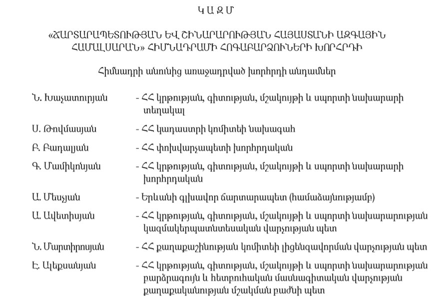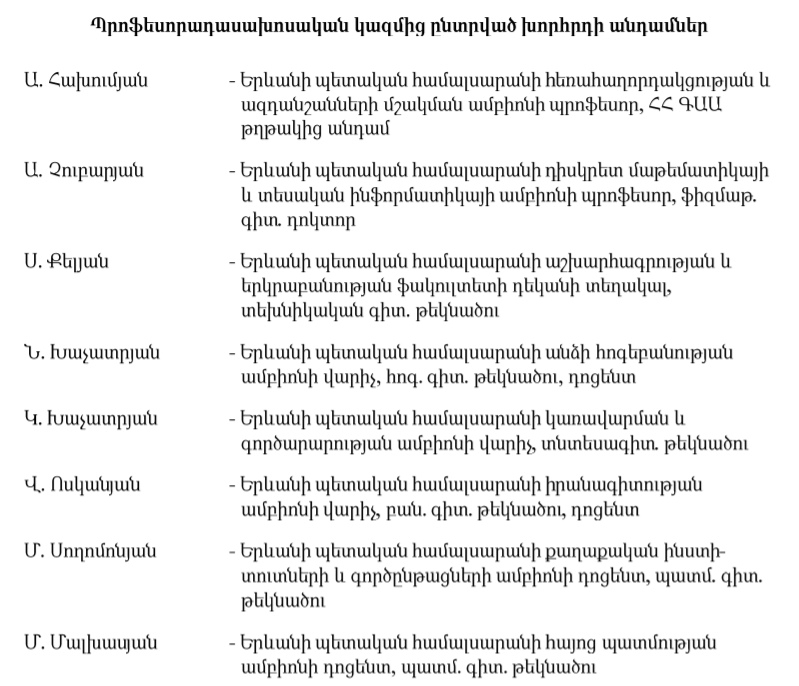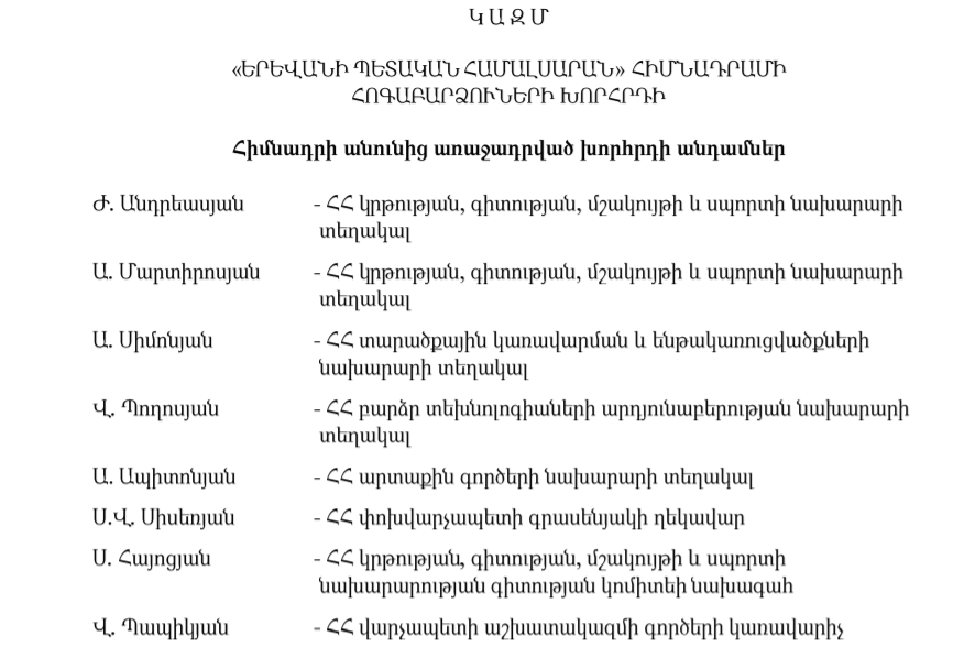 ՀՀ վարչապետ Նիկոլ Փաշինյանն արդեն ստորագրել է այս եւ եւս երեք համալսարանների հոգաբարձուների խորհուրդների կազմերը հաստատելու մասին որոշումները։