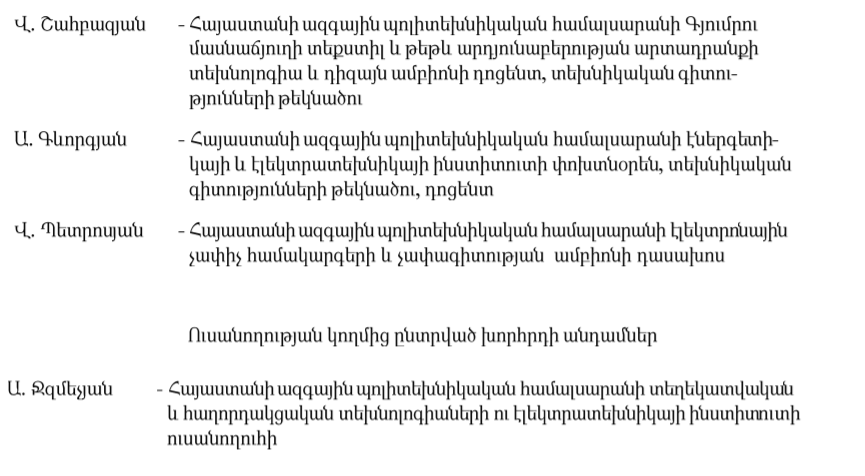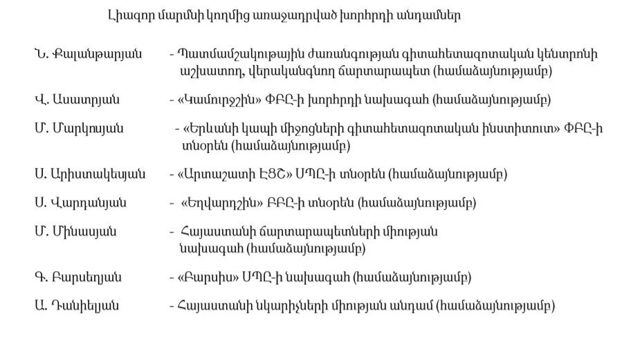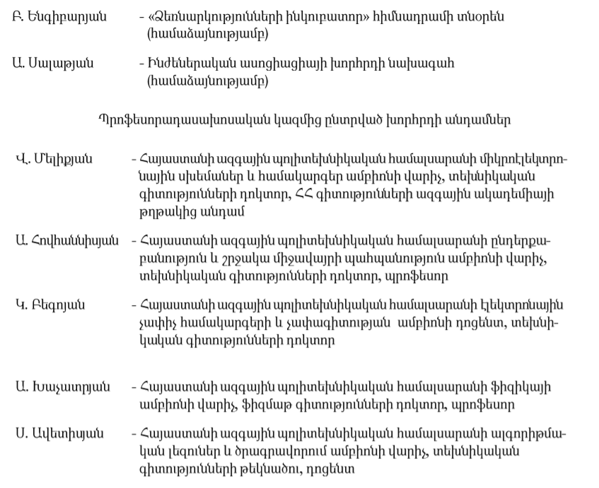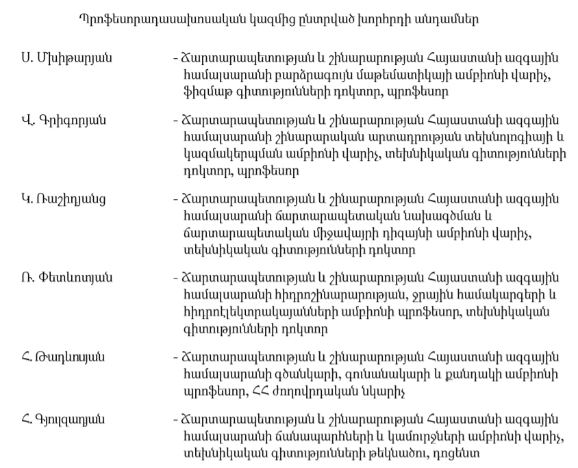 Երեւանի Պետական համալսարանի, Ճարտարապետության և շինարարության Հայաստանի ազգային համալսարանի եւ Հայաստանի ազգային պոլիտեխնիկական համալսարանի հոգաբարձուների խորհուրդների կազմերում եւս ընդգրկված են պաշտոնյաներ նախարարություններից, տվյալ բուհերի ամբիոնների ղեկավարներ եւ ոլորտի մասնագիտական կառույցների ներկայացուցիչներ: