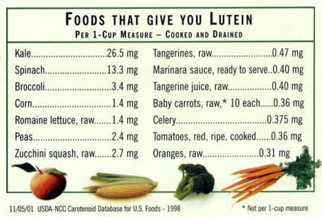 Օրգանիզմը լյուտեինով հագեցնելու լավ միջոց են բնական, թարմ քամված հյութերը։ Օրինակ՝ 1 բաժակ լոլիկի հյութը պարունակում է օրգանիզմին անհրաժեշտ լյուտեինի օրվա չափաքանակը։ Կենդանական ծագման սննդամթերքներից լյուտեին պարունակվում է հավկիթներում, հատկապես դեղնուցում։