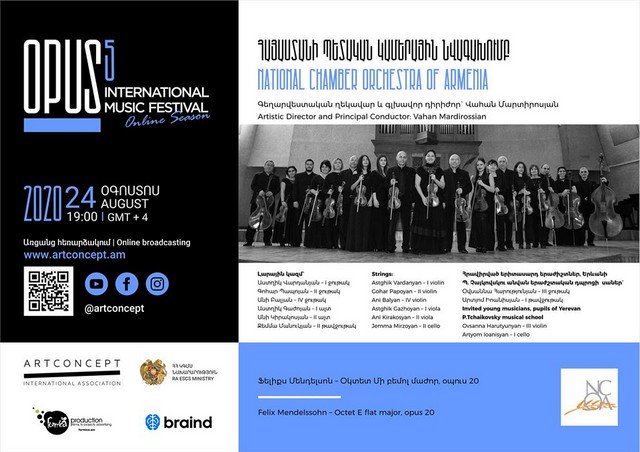 Հայաստանի պետական կամերային նվագախումբը ելույթ է ունեցել «ՕՊՈՒՍ 5» միջազգային երաժշտական փառատոնի շրջանակում։ Նվագախումբը՝ պատանի երաժիշտների ներգրավմամբ, կատարել է Ֆելիքս Մենդելսոնի «Օկտետ» ստեղծագործությունը։ Ելույթ են ունեցել ՀՊԿՆ երաժիշտներ Աստղիկ Վարդանյանը (առաջին ջութակ), Գոհար Պապոյանը (երկրորդ ջութակ), Անի Բալյանը (չորրորդ ջութակ), Աստղիկ Գաժոյանը (առաջին ալտ), Անի Կիրակոսյանը (երկրորդ ալտ), Ջեմմա Մանուկյանը (երկրորդ թավջութակ) և Երևանի Չայկովսկու անվան երաժշտական միջնակարգ մասնագիտական դպրոցի տաղանդավոր սաներ Արտյոմ Իոնիսյանը (առաջին թավջութակ) ու Օվսաննա Հարությունյանը (երրորդ ջութակ)։