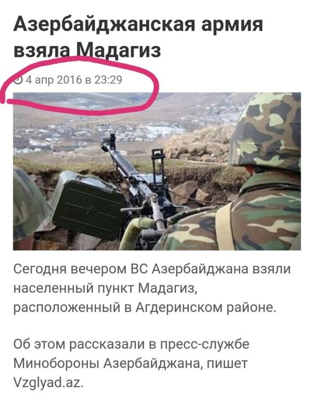 Օրինակ, 2016-ի ապրիլի 4-ին իրենք արդեն հաղորդել են, որ վերցրել են Մատաղիսը: Ընդ որում՝ հետագայում երբեք չեն պնդել, որ կորցրել են: Այսինքն՝ Մատաղիսը պետք է այսպես թե այնպես իրենցը լիներ, եթե իրենց պաշտոնականին հավատայինք: