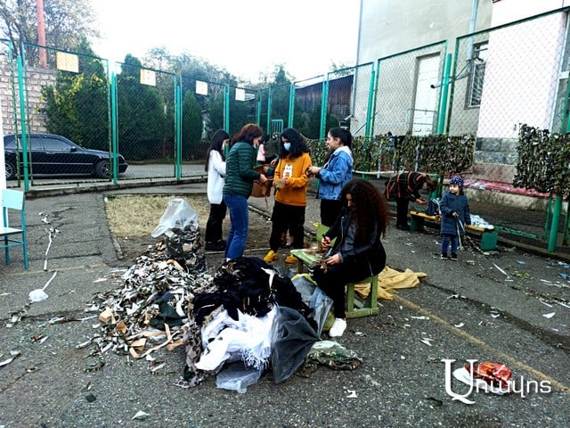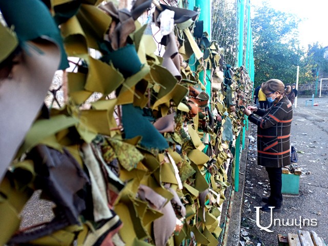 Արդեն մի քանի օր է՝ քաղաքի տարբեր հատվածներում սահմանի համար պաշտպանիչ ցանցեր են գործում. «Այն զգացումով եմ գալիս, որ ինչ-որ կերպ կարողանամ օգտակար լինել: Թե չէ ավելի լավ էր մենք նման բան չանեինք, ցանցեր պատրաստեինք միայն ուսուցողական նպատակով: Այս պահին միակ ուրախալի փաստն այն է, որ նույնիսկ շատ փոքր երեխաներն են օգնում, թեկուզ միայն կտորը բռնելով օգտակար են լինում,- ասում է կամավոր Հայկուհի Ավագյանը: