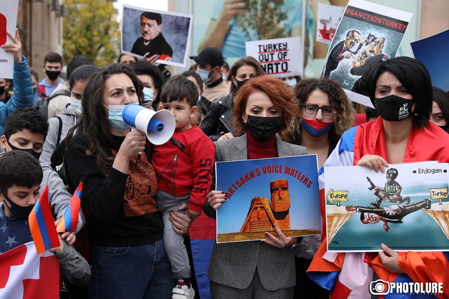 Նախաձեռնության անդամ Լիանա Ադամյանն էլ հիշեցրեց, որ քաղաքացիական բնակչության նկատմամբ միջազգայնորեն արգելված եւ քիմիական զենքեր են կիրառվում եւ ասաց. «Եկեք եւ երաշխիք ստեղծեք, որ լկտի Ադրբեջանը Թուրքիայի հետ պահպանելու է հրադադարը: Մենք կեղծ հրադադար չենք ուզում, կեղծ օրակարգ չենք ուզում, մեր դահիճի հետ սեղան նստել չենք ուզում, նոր խաղաթղթերով բանակցային գործընթաց չենք ուզում, մենք տեւական խաղաղության կողմնակից ենք: Մենք մեր հայրենիքում ապրել ենք դարերով եւ ապրելու ենք դարերով, մենք վաղուց հաղթել ենք մահը, մենք ծնում եւ դաստիարակում ենք այնպիսի սերունդ, որը մահին գնում է ընդառաջ՝ բաց ճակատով: Ասեք ձեր հերոսների անունները, դուք ունե՞ք նման կերպարներ: Հայի արյունով թաթախված եվրոներն ու մանաթները ձեր լռության արդյունք են: Ո՞ւր են ձեր արժեքները, որոնց իբր կրողն եք, մենք ձեր ճակատին ենք տալիս արյան մեջ թաթախված այդ արժեքները, խեղդվեք այդ արյան մեջ, գուցե թե խիղճն արթնանա: Ամոթ»: