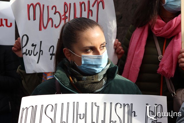 Այսօր Ազգային ժողովի արտահերթ նիստում քննարկվում է «Ռազմական դրությունը վերացնելու մասին» «Լուսավոր Հայաստանի» նախագիծը: Իսկ ԱԺ մուտքի մոտ ցույց էին անում քաղաքացիները՝ «Դավաճաններ», «Հող հանձնող» ցուցապաստառներով եւ «Ամոթ» վանկարկումով: Ցուցարարների խոսքով՝ ռազմական դրության երկարացմամբ ուղղակի ուզում են խլացնել բողոքի ձայնը, որ ալիքը մարի, բայց դա չի լինելու. «Ավելի լավ է հիմա կողմ քվեարկեք «Ռազմական դրության չեղարկմանը եւ ձեր փափուկ աթոռները թողնելով՝ գերադասեք պատիվն ու թասիբը, որպեսզի ձեր ամբողջ կյանքը դավաճանի պիտակով ման չգաք»: