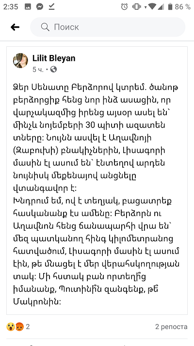 -Երեկ իրավիճակն այդպիսին էր, դրա համար այդպիսի գրառում եղավ: Հետո իրավիճակը փոխվեց, եւ գրառումը հանեցինք: