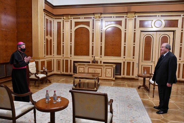 Սուրբ Աթոռի պատվիրակը նշել է, որ Հայաստանում է որպես Նորին Սրբություն Հռոմի Պապի ներկայացուցիչ և երկրի բարեկամ: Նա Հանրապետության նախագահին իր ցավակցություններն է հայտնել պատերազմի ընթացքում կրած մարդկային կորուստների կապակցությամբ՝ նշելով, որ Ֆրանցիսկոս Պապը, որն առանձնահատուկ հարաբերություններ ունի Հայաստանի և հայերի հետ, պատերազմի առաջին իսկ օրերից կարևորել է խաղաղություն հաստատելու անհրաժեշտությունը: