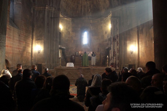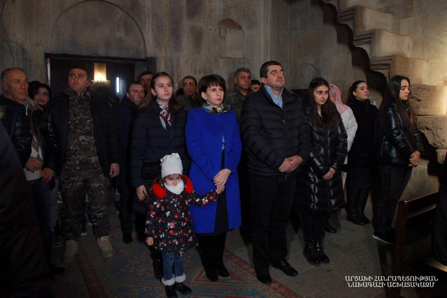 Արցախի Հանրապետության նախագահ Արայիկ Հարությունյանն՝ ընտանիքի անդամների հետ միասին, այսօր ներկա է գտնվել Սուրբ Ծննդյան և Աստվածահայտնության տոնի առթիվ Գանձասարի վանական համալիրում մատուցված պատարագին: