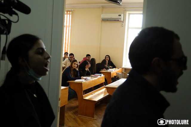 Երիտասարդների հետ հանդիպեց ԵՊՀ ռեկտորի պաշտոնակատար Գեղամ Գեւորգյանը: Ցուցարարները պնդեցին, որպեսզի նա իր տեսակետն արտահայտի: