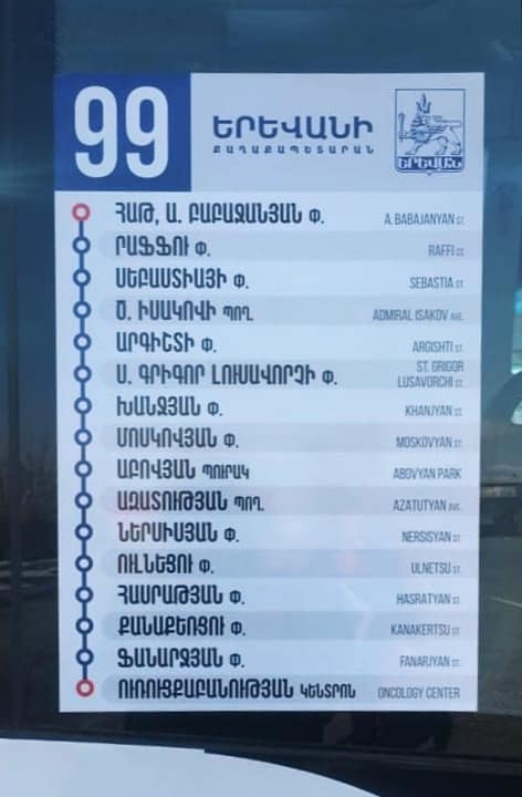 Ի դեպ, նոր երթուղում առաջին անգամ կիրառվում է ցուցանակների նոր դիզայնը, որի մշակման համար շնորհակալություն Braind գործակալությանը։