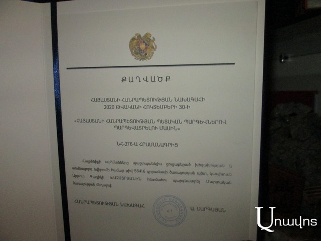 Արցախյան վերջին պատերազմում անմահացած, 31-ամյա կապիտան Արթուր Խաչատրյանը հետմահու, ՀՀ նախագահի որոշմամբ՝ արժանացել է «Մարտական ծառայության» մեդալի։ Մայրը՝ Հասմիկ Մելքոնյանը շատ կուզեր, որ ինչպես մյուս մեդալները, այս մեկն էլ Արթուրը անձամբ ստանար։