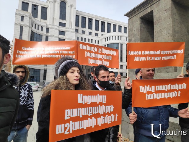«Արդար Հայաստան» նորաստեղծ կուսակցության (հիմնադիր-նախագահ՝ փաստաբան Նորայր Նորիկյան) անդամներն այսօր ՀՀ արտաքին գործերի նախարարության շենքի դիմաց էին՝ փոխանցելու հայ ռազմագերիների վերադարձի, Իլհամ Ալիևի պահվածքի և դրան համարժեք պատասխանի, ինչպես նաև Արցախի հիմնախնդրին առնչվող այլ հարցերի մասին համապատասխան դիմումներ։