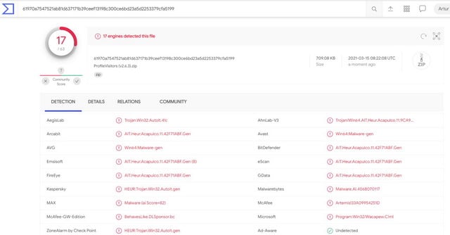 Հասցե կարճացնող ծառայությունը ձեզ վերաուղղորդում է ֆիշինգային հարձակումներով հայտնի այս IP հասցե՝ 172[.]67[.]83[.]132, այնտեղ ևս մեկ վերաուղղորդավորում՝ hxxps://storage[.]googleapis[.]com/82eb3cc3827267c033b24392e969ed9a/169338348.mp4։ Սա արվում է, որպեսզի բրաուզերին ու հակավիրուսին թվա, թե դուք այդ կայքից անմեղ մուլտիմեդիա ֆայլ եք քաշում, բայց իրականում այդ ֆայլի փոխարեն բեռնվում է zip ֆայլ, որը ամեն այցելուի համար կարող է որոշ փոփոխություններ կրել, օրինակ՝ ProfileVisitors (v1.1.18).zip, ProfileVisitors (v2.6.3).zip և այլն։