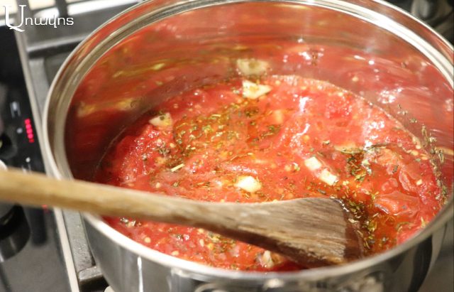 Մարինարայի պատրաստման համար պետք է վերցնել սեփական հյութի մեջ պահածոյացված լոլիկներ, որոնք կարող են լինել ինչպես ամբողջական, այնպես էլ, ցանկալի է՝ կտրատած (crushed tomatoes), կամ պյուրե դարձրած (իր խտությամբ տոմատի մածուկի եւ տոմատի հյութի մեջտեղը գտնվող լոլիկի պյուրեն կոչվում է passata եւ կարելի է գտնել Երեւանի սուպերմարկետներում): Իհարկե, ամռանը եւ վաղ աշնանը կարելի է պատրաստել նաեւ թարմ լոլիկներից, բայց էդ դեպքում շատ երկար պիտի եփել՝ 1-1,5 ժամ: Լցրեք լոլիկները կաթսայի մեջ, ավելացրեք սխտորը, ձիթապտղի յուղն ու չորացրած օրեգանոն եւ դրեք կրակին առնվազն 10-15 րոպեով: Եթե ուզում եք սոուսը լինի թթվաշ՝ այդքան ժամանակը բավարար է, իսկ եթե ուզում եք քաղցրանա, թողեք եփվի 30-40 րոպե: