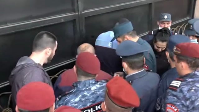 Ոստիկանները շղթաներն արձակեցին եւ ուժով հեռացրին շղթայված քաղաքացիներին՝ տանելով ոստիկանական բաժանմունք: