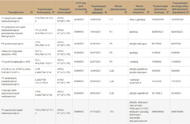 Պետական գնումների armeps.am համակարգում հրապարակված պայմանագրի համաձայն՝ «Մեգա Թրեյդ» ՍՊԸ-ն պարտավորվել է 5 մլրդ 450 միլիոն դրամի դիմաց Պաշտպանության նախարարությանը մատակարարել 4000 տոննա ռեգուլյար տեսակի բենզին և 6042 տոննա դիզելային վառելիք: