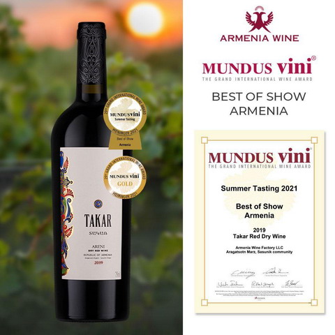 Ավելի քան 28 միջազգային մրցանակ, որից 11-ը ոսկի, այսպիսի հաղթանակներով է ամփոփում Արմենիա Վայն գինեգործարանը 2021 թվականը: Համաշխարհային հեղինակավոր Մունդուս Վինի մրցույթում Արմենիա Վայն ընկերությունն արժանացել է լավագույն արտադրող, իսկ Տակառ գինի Best of Show Armenia բարձրագույն կոչումներին: