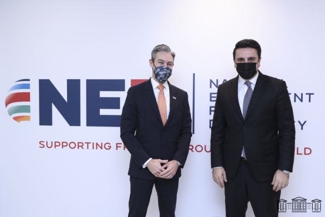 Ժողովրդավարության ազգային հիմնադրամի (NED) նախագահ Դեյմըն Ուիլսընի հետ հանդիպմանը զրույց է ծավալվել 8-րդ գումարման Ազգային ժողովի աշխատանքների, ինչպես նաեւ մի շարք ոլորտներում նախատեսվող առաջնահերթ օրենսդրական բարեփոխումների շուրջ: ՀՀ ԱԺ նախագահ Ալեն Սիմոնյանի հարցին ի պատասխան՝ Դեյմըն Ուիլսընը ներկայացրել է Հայաստանի եւ հատկապես ԱԺ-ի հետ նախատեսվող համագործակցության ծրագրային հիմնական ուղղությունները: Այս համատեքստում քննարկվել են ԱԺ-միջազգային կառույցներ-քաղաքացիական հասարակություն համագործակցության ձեւաչափին առնչվող հարցեր: Ամերիկացի գործընկերները կարեւորել են Հայաստանում ազատ մամուլին եւ ժողովրդավարության արժեքներին միտված նախաձեռնությունները՝ նշելով, որ շարունակելու են ծրագրային, մեթոդական եւ այլ աջակցություն ցուցաբերել: